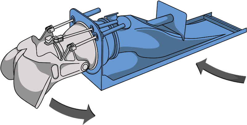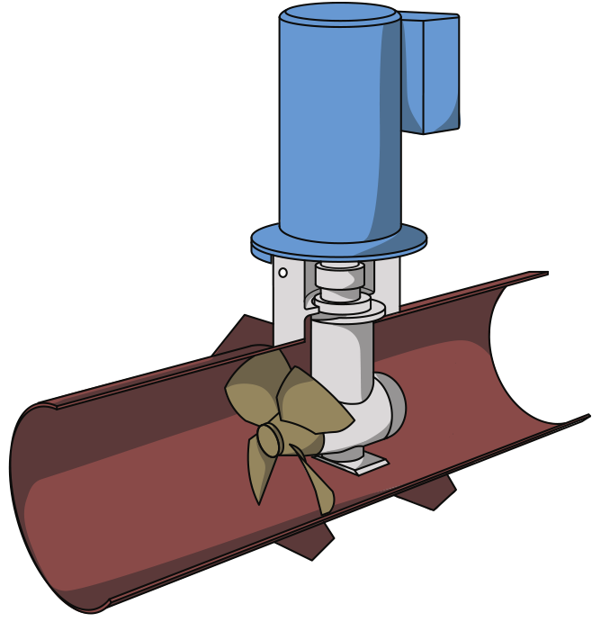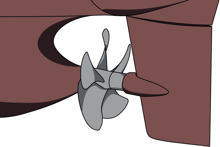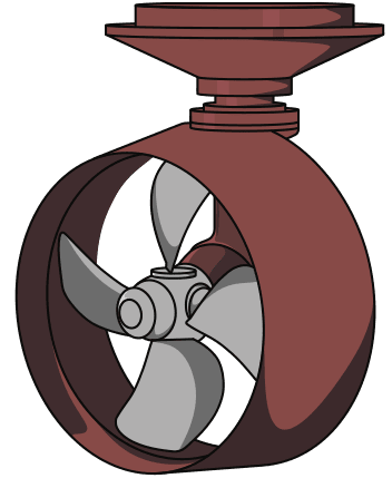 La vaina suele estar situada por debajo de la línea de flotación y puede girar mediante un motor hidráulico o eléctrico.